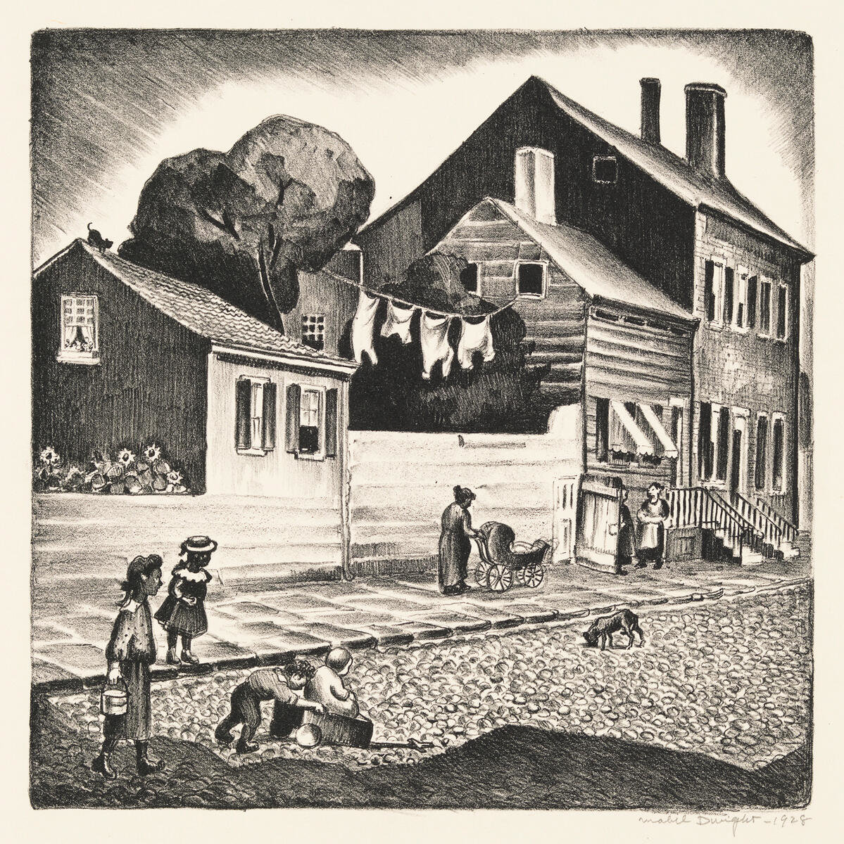Mabel Dwight (1876–1955) wrote that keeping “a cool head and a warm heart” was essential to making art that would be a “living influence on the world.” Dwight came to New York at the turn of the century as an illustrator and later fell in with the downtown artists who frequented the Whitney Studio Club, a precursor to the Museum. She ultimately found her voice in the swooping lines and seamless gradients of lithography. This democratic print medium became her primary vehicle for portraying her constant subject: the people and places of New York.